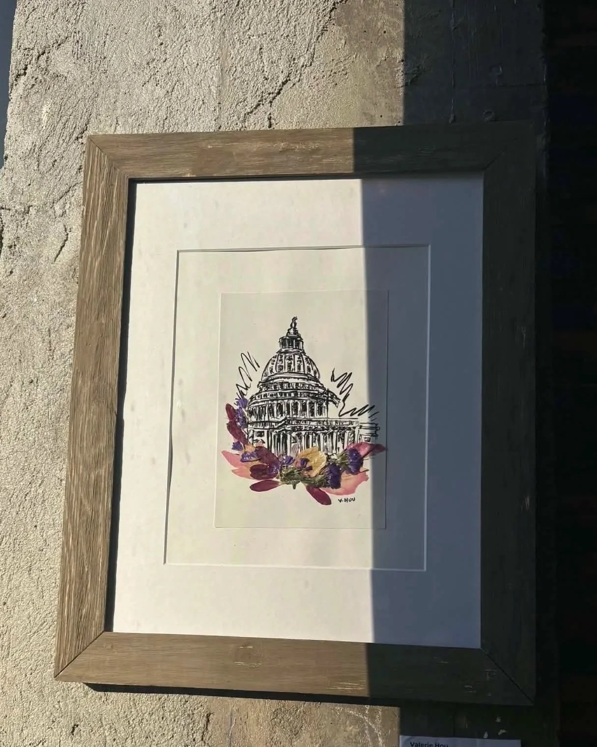 SOLD ‘Spring at the Capitol’ // watercolor, ink and pen, and dried pressed florals
