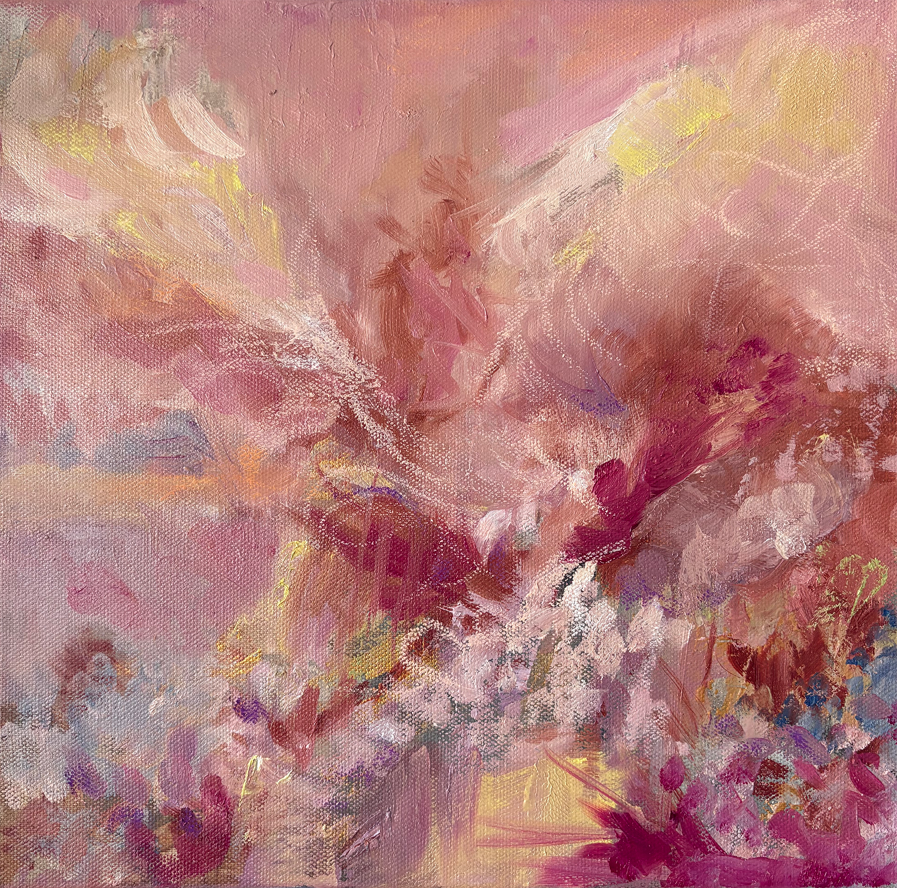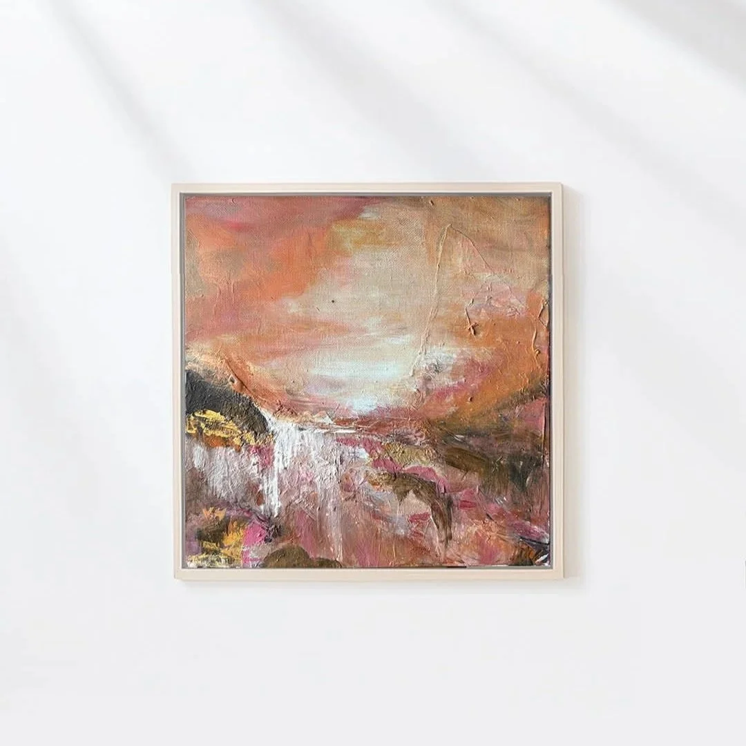 These paintings are all about movement, feeling, and quiet beauty of living in the present. I am Inspired by the natural scenery around me and our fleeting emotions we experience. Mixing earthy yet vibrant tones with soft, yet powerful and expressive brushstrokes that carry delicacy and strength. They’re not meant to shout, but to whisper, inviting you to pause, reflect, and simply feel. Let your imagination and emotions intertwine as the work gently lifts you into another dimension.